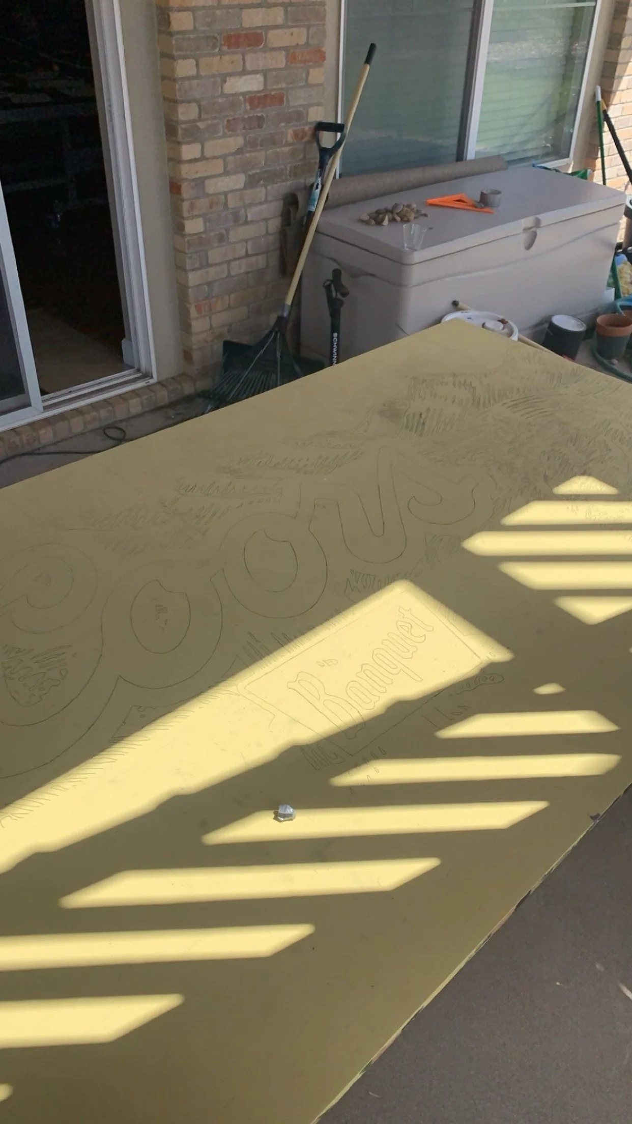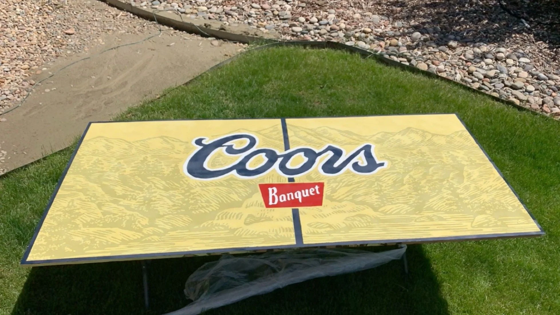 I was born and raised in the rockies, home of Coors Banquet. My buddies and I undertook a summer project to pay homage to one of our favorite brands. I designed plans for a 4x8 beer dye table. The design was printed across 32 pieces of paper, coded like battleship.
